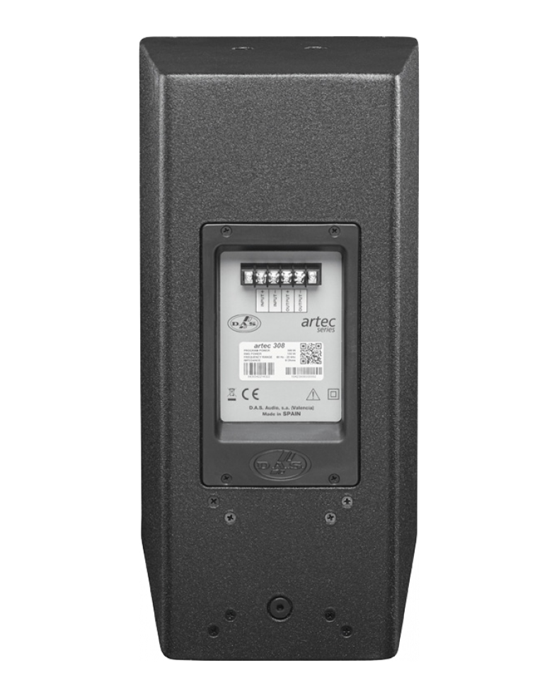 بلندگو پسیو دکوراتیو داسARTEC 308 با توان خروجی 150 وات در حالت مداوم و 600 وات در حالت ماکزیمم قابلیت تولید صدای پر قدرت را دارد. امپدانس ورودی در این اسپیکر دکوراتیو برابر 8 اهم می باشد. وجود خروجی های ترمینالی پشت بلندگو باعث لینک شدن بین بلندگوها شده و حالت موازی در دستگاه را ایجاد می نمایند.