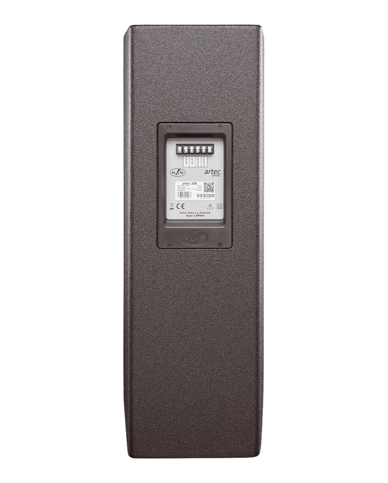 سوکت های ورودی و خروجی در بلندگو DAS AUDIO ARTEC 326 به صورت ترمینالی می باشد که نصب را آسان می نماید. امپدانس ورودی برابر 16 اهم می باشد که با اتصال سه بلندگو می توانید میزان اهم را به 4 پایین بیاورید. این قابلیت برای لینک بیشتر بلندگو امکان راه اندازی با یک امپلی فایر را ممکن می کند.