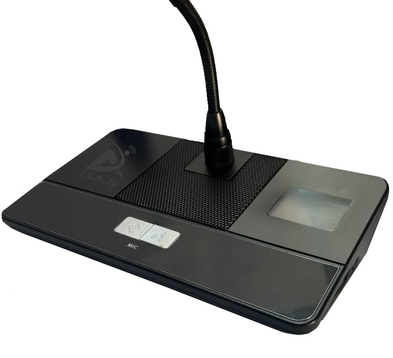 بلندگو داخلی و میکروفن گردنغازی، اتصالات کنسول از طریق کابل CAT6، امکان تنظیم صدای میکروفن توسط ولوم کنترل، دارای دو عدد کلید جهت اولویتبندی و حذف شرکتکنندگان در حال صحبت به همراه بلندگو داخلی (یونیت کنفرانس)، دارای صفحه نمایش زمان صحبت و روشن بودن میکروفن، کیفیت صدای استثنایی را ارائه می دهد. یک قفل پیچ قابل جابجایی انعطاف پذیری و اتصال محکم به دستگاه شما را تضمین می کند. همچنین حساسیت کم به تلفن های همراه را تضمین می کند. حلقه نور وقتی میکروفون خاموش است تیره است، وقتی فعال است قرمز روشن می شود و در صورت درخواست سبز است.